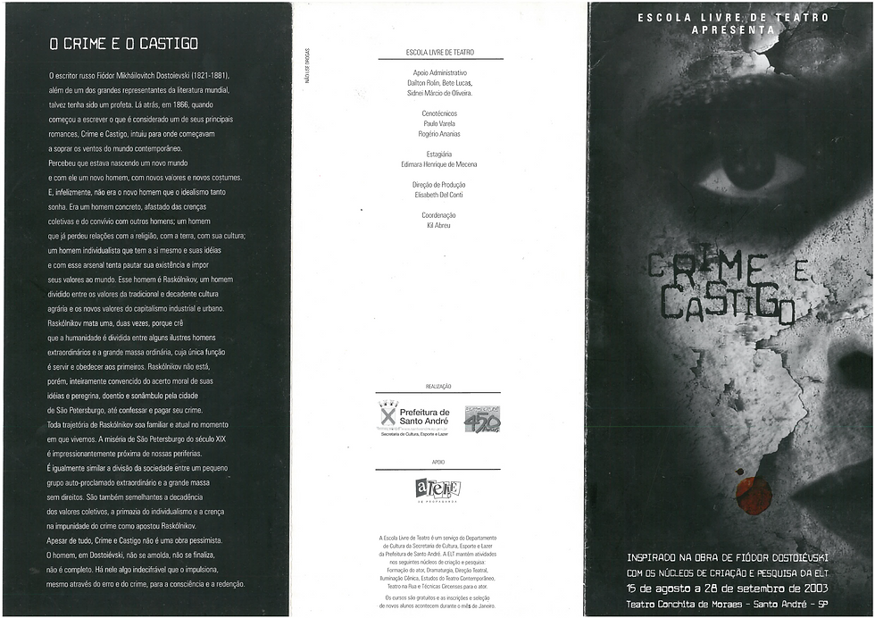 Trabalhos da dramaturgia clássica brasileira, com autores como Ariano Suassuna, Nelson Rodrigues e Plínio Marcos. E espetáculos com dramaturgias inéditas como a adaptação de “Crime e Castigo” da obra de Dostoiévski, realizada pelos Núcleos de Criação e Pesquisa da ELT, coordenados por Antônio Araújo, Luís Alberto de Abreu e Luciene Guedes. Depois já com processos independentes, Flávio Marin coordenou a concepção e direção do espetáculo “Cárcere”, de Suzana Aragão. Em 2020 fomos contemplados, no Edital PROAC LAB 47 da Secretaria de Cultura do Estado de São Paulo e no Edital da Lei ALDIR Blanc realizado pela Secretaria de Cultura de Santo André, obtendo recursos para as montagens de espetáculos teatrais para público adulto einfanto-juvenil, “Vermelho - A terra só está pedindo silêncio”, dramaturgia de Sérgio Pires, e a “A farsa do advogado Pathelin”, dramaturgia de Flávio Marin.